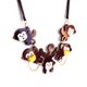 五只猴子在玩耍, 只只都想食香蕉, 但只有两只唔够分. 猴子咀巴跟香蕉均有磁石, 可以喂它们吃香蕉, 好睇又好玩。 尺寸 (W)x(H) 约 11 x 15 cm 丝带长度 100cm 如想改用镀银链也是可以的, 欢迎与我们联系。 如有问题, 欢迎查询。 我们很高兴帮忙。谢谢支持FABcessories. 产地/制造方式 香港制造, 手工制作
