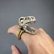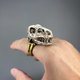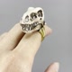 暴龙头骨戒指采用珠宝级黄铜手工绘制珐琅,呈现逼真外观。此手作饰品的金色为黄铜的真实原色,未经电镀处理,您可以随时自行抛光。但请勿抛光珐琅部分,以免颜色褪色。
