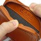 打开钥匙包,可看见右侧内缘的“革职人”品牌Logo。以专用机器装上黄铜制Logo印章,职人细心地手工烙印上每个Logo。