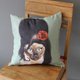 本款抱枕的正面是知名明星结合动物的Q版画风,反面则是代表各个人物的名字