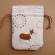 俄罗斯刺绣的柯基犬, 大大的耳朵随时注意四周动向, 是灵活又敏锐的牧羊犬呢! 搭配毛线刺绣的几何图案显得更加愉悦, 喜欢柯基犬的你一定不能错过! 朴实的手缝质感和天然素材棉麻布,让人百看不厌,愈来愈喜欢。 束口袋设计好实用,任何小物一次收纳非常方便。 规格:外袋18X12.5cm,束口后收纳空间12.5X12.5cm 材质:100%纯棉(刺绣图案)及棉麻 保养方式:可手洗 产地/制造方式 产地台湾 手工制作