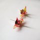 日本千代纸制--千羽鹤耳钉, 配耳托(图中胶托已完售,现使用不锈钢耳托)