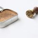 复古铁盒,制作封蜡小帮手,先将封蜡章在金粉印台上按压一次,使印章沾上金粉印泥,再盖至封蜡上面,金粉会凸显图案的立体度,且可免除铜章刻槽沾蜡的困扰,十分方便,封蜡章盖出来就会又增添另外一种闪烁的美。