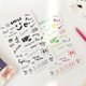 文字贴纸印刷在透明底色,很适合贴在有花色物品上做装饰。