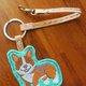 - 这款设计以特殊纸质皮革纸/可水洗牛皮纸,搭配多款毛小孩刺绣图案,以纯手工缝制而成,并可水洗,可环挂包包,易拆卸加装配件,背面可缝上专属名字(请于订购时备注)。