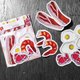 虾子两只、培根两片、荷包蛋四颗、生肉两块