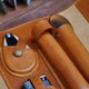 两只装雪茄套旋转上扣带防止雪茄脱落,雪茄剪、打火机依实际尺寸量身订制存放空间
