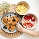 内容物:竹纤维麦片碗-鲑鱼贝果一入、竹纤维点心碗-鲑鱼贝果一入、竹纤维面包盘-鲑鱼贝果一入、防滑吸盘两入