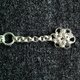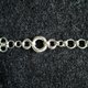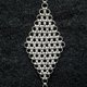 各种不同宽度的金属镮串成长约22cm长的菱形金属手链,使用约660个金属镮采单镮和三镮编织非常坚固。编成菱形的简单俐落造型,配抢眼的镀纯银色金属,非常适合具现代感和前卫个性特质的人。