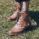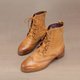 在鞋孔系带融入古典设计,优雅流畅的交叉系带为牛津靴款的延伸亮点;