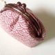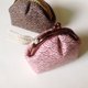 表布 米底红线图样、里布 橘米线条、口金 亮褐、蕾丝缎带随机。