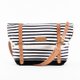 Toy Bag : 黑白条纹帆布和皮制手提带斜背邮差包
