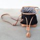 Mini Bucket Bag with Tassel Available 3 colours: Cream / Black and Light Denim Canvas and genuine leather Light weight Adjustable Strap Dimension : 12x18x23 cm.