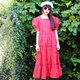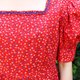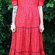 Description: F1077(Vintage)红色小碎花棉质短袖古着洋装(婚礼/野餐/派对)