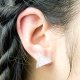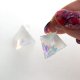 It is a pyramid-shaped earrings that were trapped in the crystal resin Aurora to fine lame.