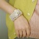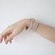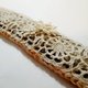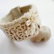 具风格且精致的蕾丝手环。该款商品由手钩蕾丝及串珠蕾丝花片所组成,内侧以毛线及毛海钩织花片衬底,以对映出外部细致蕾丝的图样,并使其有着温暖及柔软舒服的触感。手环上亚麻色的手钩蕾丝花片遇上淡雅的象牙白串珠蕾丝,在古典精致的气息中,也有着一份独特风格的韵味。