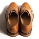 手工上色小牛皮鞋面、真皮内里、木跟及橡胶大底