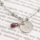 不锈钢细链,石榴石约7-8mm,不锈钢吊牌约12mm