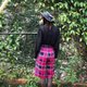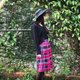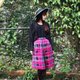 Description: (Vintage)桃红色格纹附双口袋古着裤裙