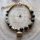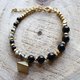 品名:自然风系列NO.126黑玛瑙大麦町石黄铜不对称手链