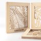 一套四款树叶的木雕装饰。我们以激光雕刻分层木片,最后以手工镶嵌起来。