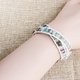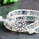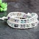【材质】彩萤石、进口希腊真皮牛皮绳、编织线、合金组件、进口手链扣