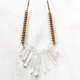 “天然白水晶为晶中之王,代表纯洁、无私的纯净之石。能提升人的灵气,为妳驱除杂念” ” Revival 水晶柱项链创作灵感源自于古希腊战神的附身符,复古铜与天然矿石线条,搭配鱼骨链点缀,手工精致工艺制作,彷佛赋予宝石神奇的魔力,呈现出优雅洁净的线条及不造作的自然矿石风貌。 * 由于天然宝石皆为大自然亿万年时空火热焠链的造物,每个色泽纹理不尽相同,独一无二。 材质:白水晶,铜 长度:49cm 产地/制造方式 TAIWAN & USA