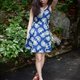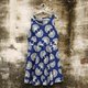 深蓝色系的底色配上像是显微镜下的植物细胞剖面、又像菇类,这样耐人寻味的花样,配合高腰线、下摆伞状的设计,轻松穿出优雅的感觉。(附口袋及内里)
