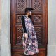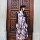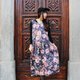 Description: F829(Vintage)咖啡色大花朵棉质无袖古着洋装
