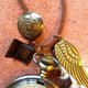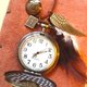 Handmade-复古古铜相盒时钟羽毛怀表皮绳项炼