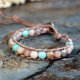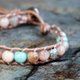 【材质】太阳石6mm、彩色贝壳6mm、真皮牛皮绳、编织线、合金、不锈钢扣
