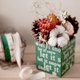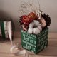 松果、棉花、肉桂棒、果干、字母木盒。每件商品会依干燥花最好的姿态摆设,所以不会与照片呈现一模一样的位置喔。