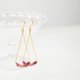 纽扣型切割的宝石素材的天然石粉红电气石长链耳环。