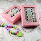这个作品也很适合当情人节小礼物喔!我特别贴心地选用时尚又可爱的粉色小礼盒来包装,让你完美传达你的爱。送腻了巧克力吗?今年就来送个彩虹糖果别针吧!
