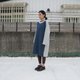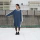 真的很喜欢这块很有质感的灰白两色粗毛线织成的布料,配上一块颜色和编法都非常特别的棉布,版型上的设计也是将明显色块的部分缩小,有显瘦的效果噢!
