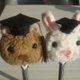 小熊和兔兔也和大家穿着学士服,戴着帽子要毕业啰