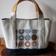 象牙白的硬挺帆布,搭配深蓝色的帆布做为包底,很无印良品风,但,更为精致