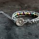 【材质】黑胆石镀彩、黑胆石镀白K、真皮牛皮绳、编织线、进口六芒星手链扣