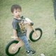 一个爱骑脚踏车的两岁小孩与辅助轮及脚踏板的牵扯不清