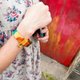 男生女生都可以~ 快点选自己喜欢的颜色搭配啰! 可选择皮带式或钮扣式! 手缝手染 即便有两个人都选了一样的配色仍然独一无二 【尺寸】 宽:约1.5cm 长:约27cm