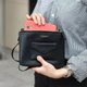 双包肩背包正面还有一个子母扣信笺口袋设计,信笺口袋约可收纳10张卡片,当包包整体不单调又能拿来收纳票卡。