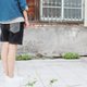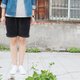 .短裤两侧有口袋,左侧后方车有三角小标,