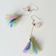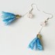 用上很美的粉彩色手工羊毛线结成中国结的长耳环, 暂有 蓝, 粉彩色系