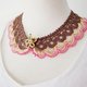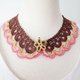 雅致、不俗的手工蕾丝领饰。该款商品由钩编蕾丝及串珠蕾丝技法所制成,珠材采用日本玻璃小珠,古典的蕾丝与层层雅致色调的玻璃小珠,为此蕾丝领饰带来雅致、脱俗的手创美感及怀旧的浪漫。