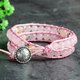 【材质】粉晶、粉东陵、进口金属色真皮牛皮绳、编织线、合金组件、进口手链扣