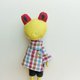 好有秋天的感觉!~ 天气微凉~ 小青蛙穿着小披风出门玩了!~ 这个娃娃~手脚有加铝线(可弯曲) 材质:棉花、布、铝线 布偶高约:27厘米 产地/制造方式 台湾