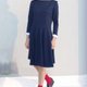 型→一字领交叉领口显优雅气质/裙摆剪接波浪设计/袖口反摺配色
