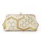 This vintage Japanese silk kisslock clutch is a beautiful mix of bishamon (毗沙门龟甲文) body armour pattern with the "seven treasures" (七宝) symbols. It's perfectly sized as a travel clutch and would make a wonderful holiday season gift to those with an appreciation for Japanese culture. By giving the vintage obi a new purpose, we hope the treasure symbols on the clutch bag would giving the wearer luck on her quest of treasure hunting as she earns her own keep!
