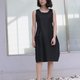 棉麻布立体裁剪黑色无袖洋装