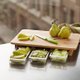 Mocubo竹制收纳砧板将食物收纳盒贴心的设置在砧板下方,将处理好的食材分门别类,方便料理时单手拿取,整体为竹制材质耐用好清理,实用又俐落的设计,替料理过程增添一抹趣味。